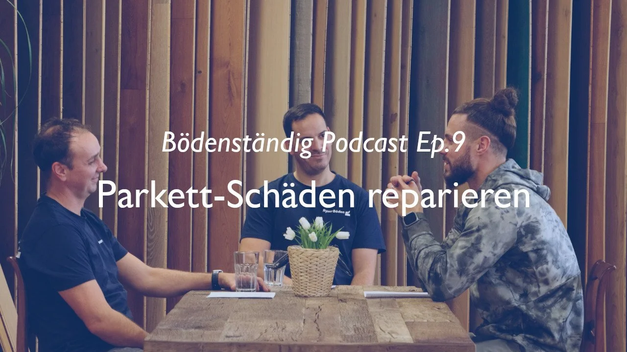 Sven Ryser unterhält sich mit zwei unserer Mitarbeitenden über Parkett-Schäden. Was sind die gängigsten Schäden, die entstehen am Parkett und wie behebt man diese fachmännisch?